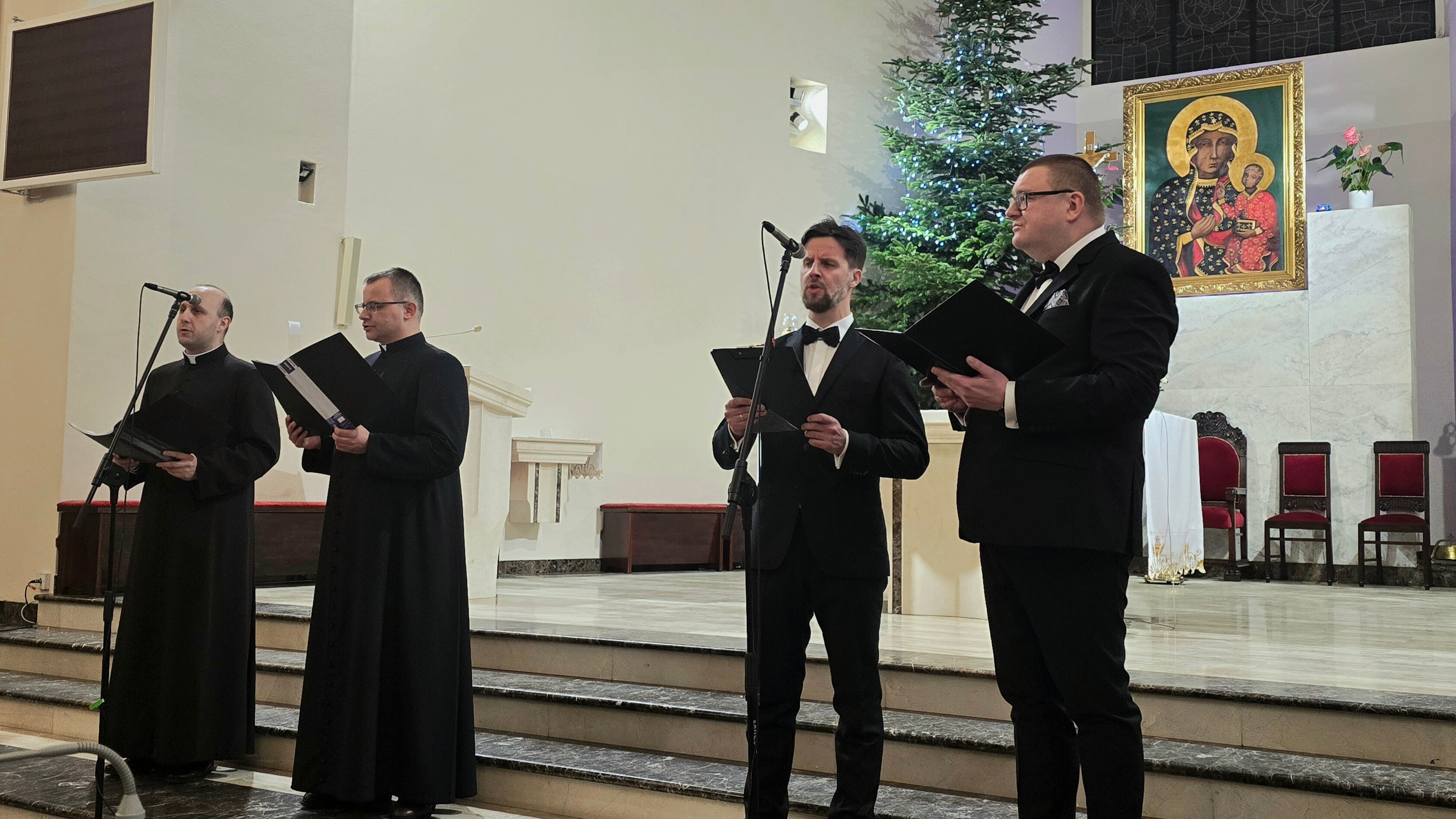 Wydarzenie rozpoczęła kolęda „Nad Betlejem” w wykonaniu ks. Dominika, ks. Sebastiana, organisty Krystiana Marczaka oraz p. Tomasza Kawczyńskiego. Piękny występ w czterogłosie wprowadził wszystkich w radosny i podniosły nastrój.