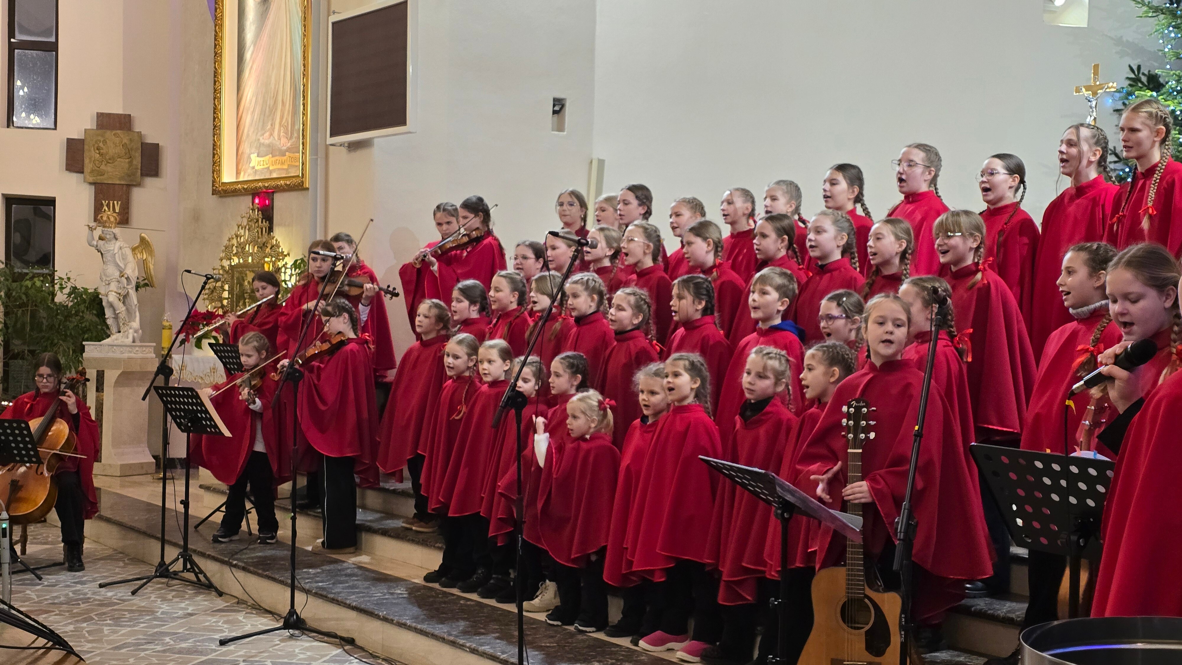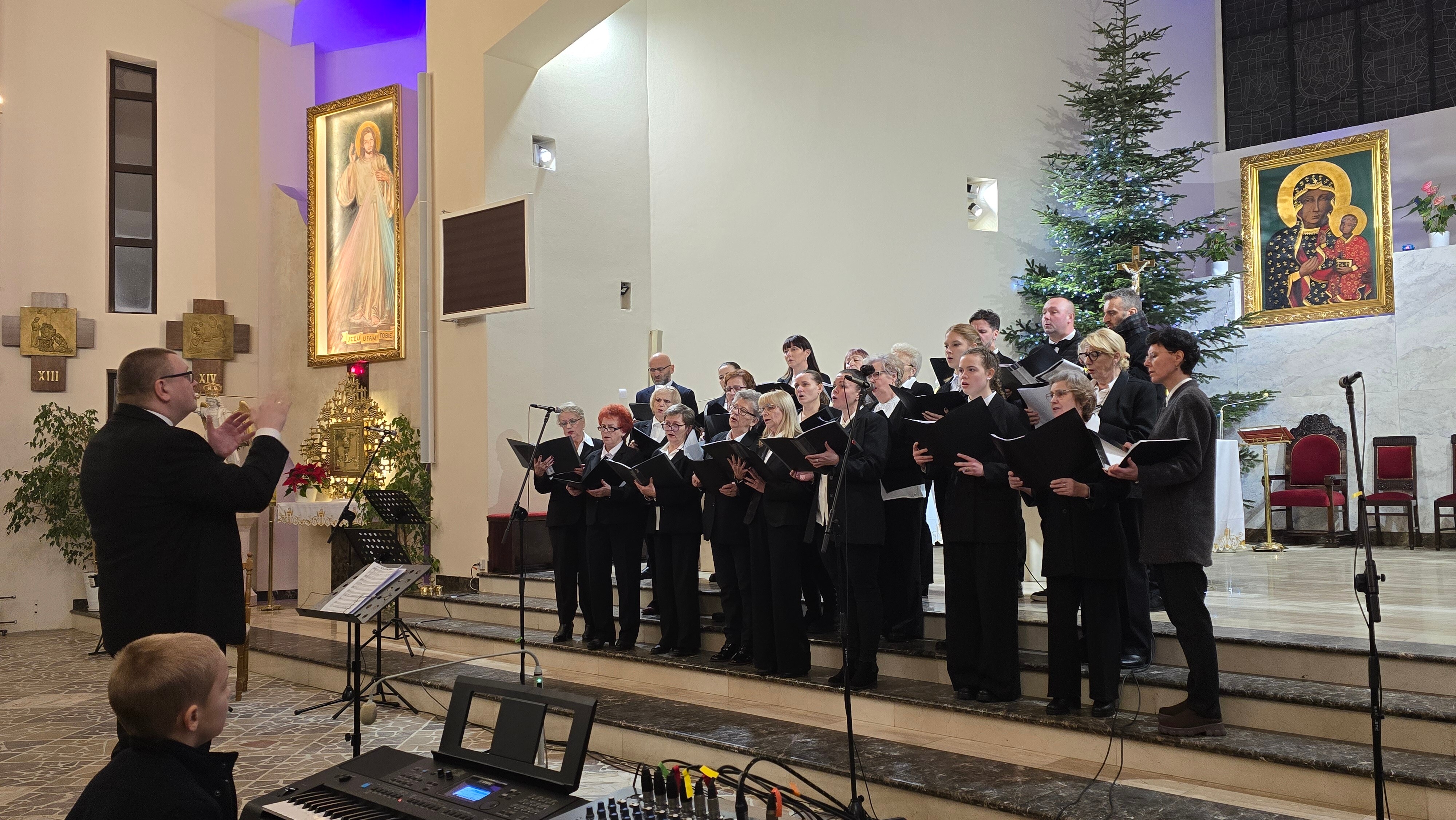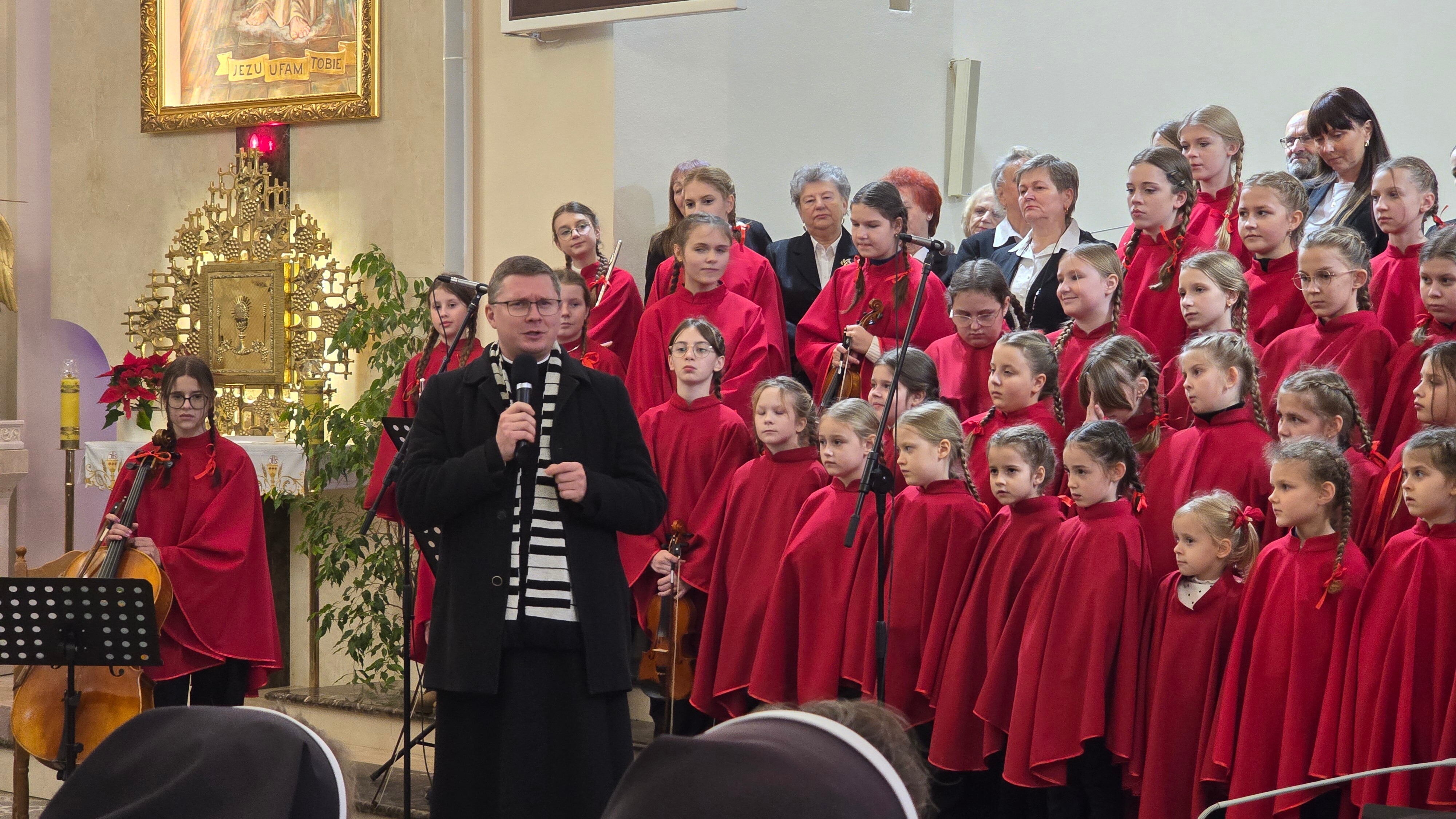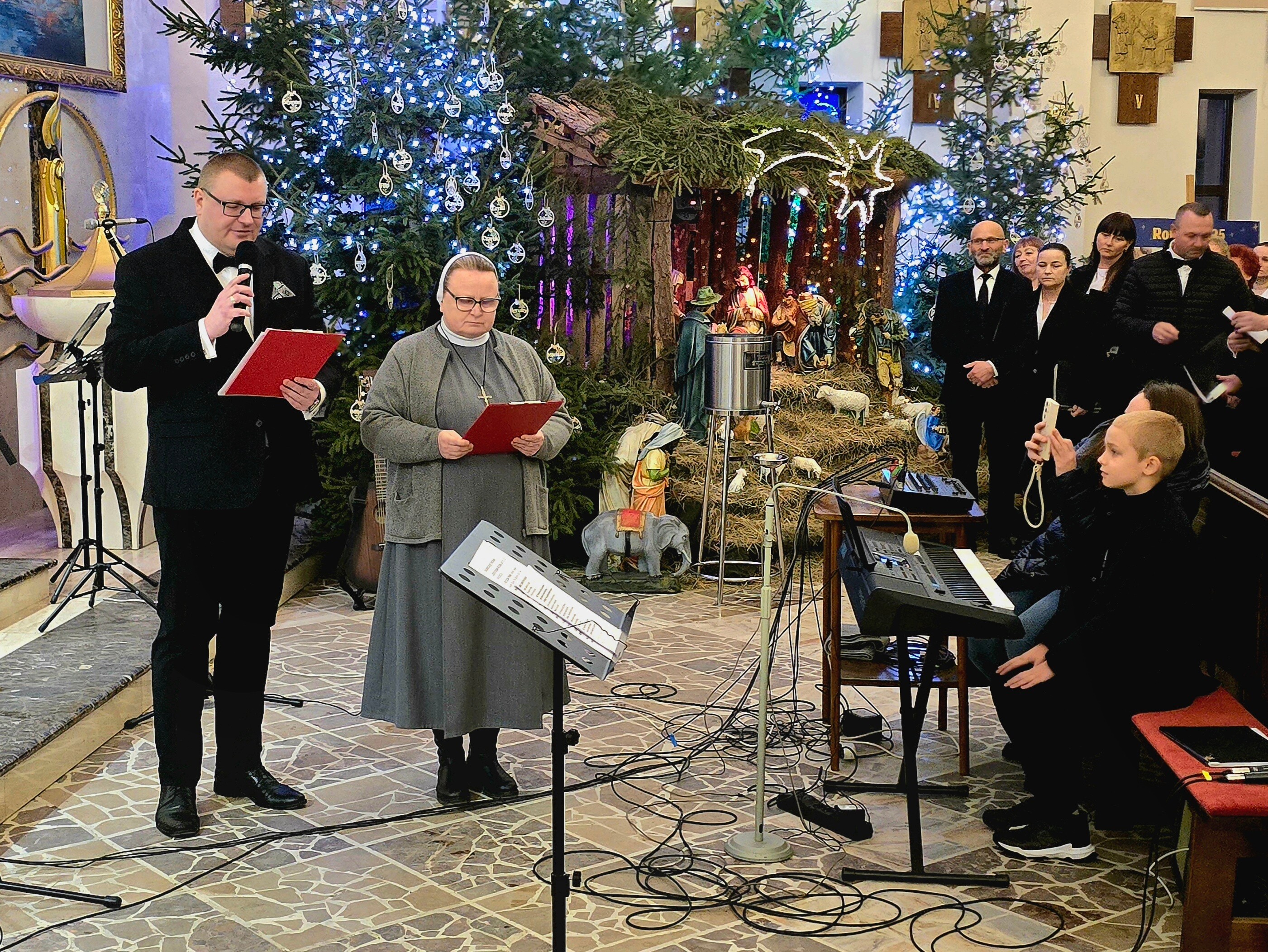 Następnie swój repertuar zaprezentował Chór Parafialny pod kierownictwem organisty, Pana Krystiana Marczaka, a także nasza schola wNieboGłosy, przygotowana przez s. Anuncjatę oraz Pana Krystiana. Mamy nadzieję, że nasze wykonania, pełne dziecięcej radości i ufności, dostarczyły wszystkim zebranym cudownych wrażeń i na długo pozostaną w pamięci słuchaczy.