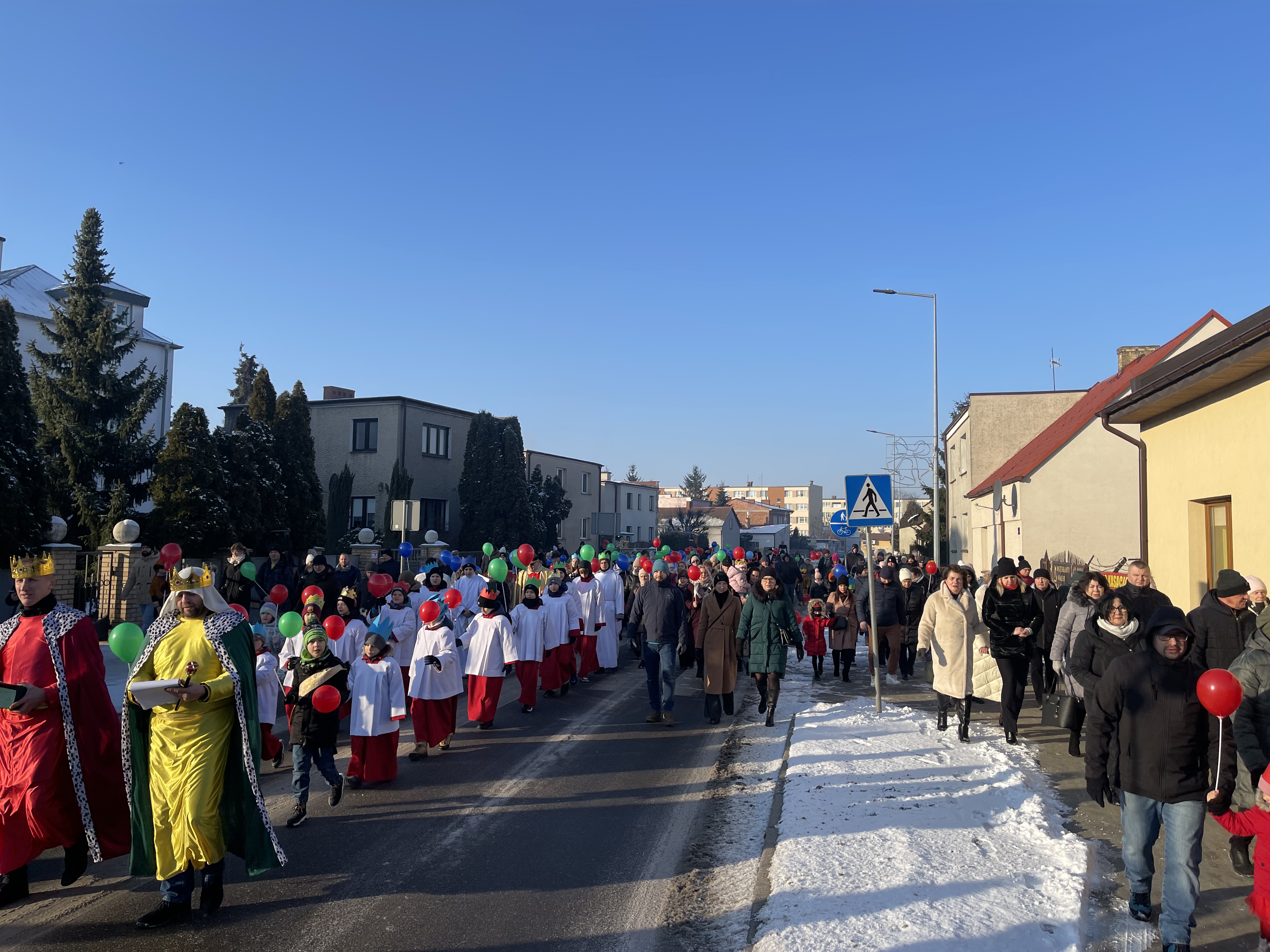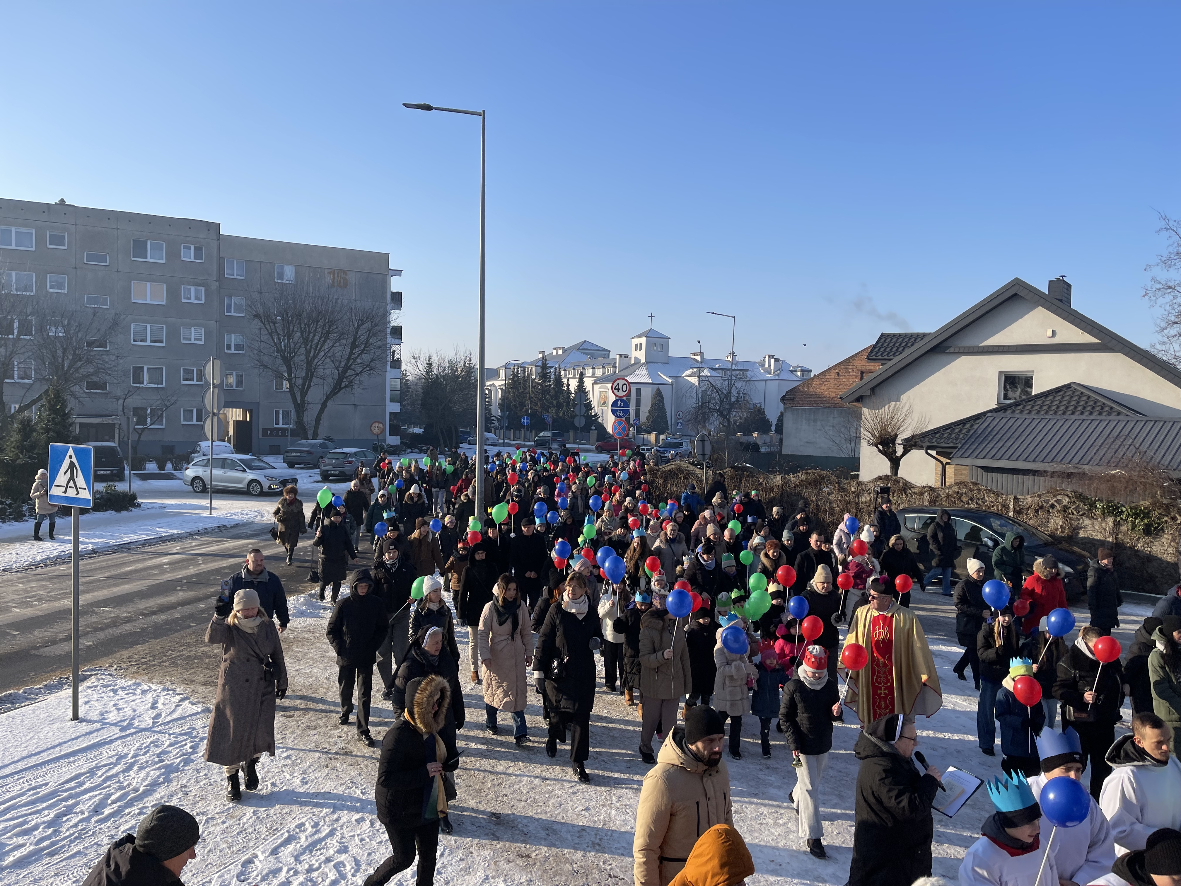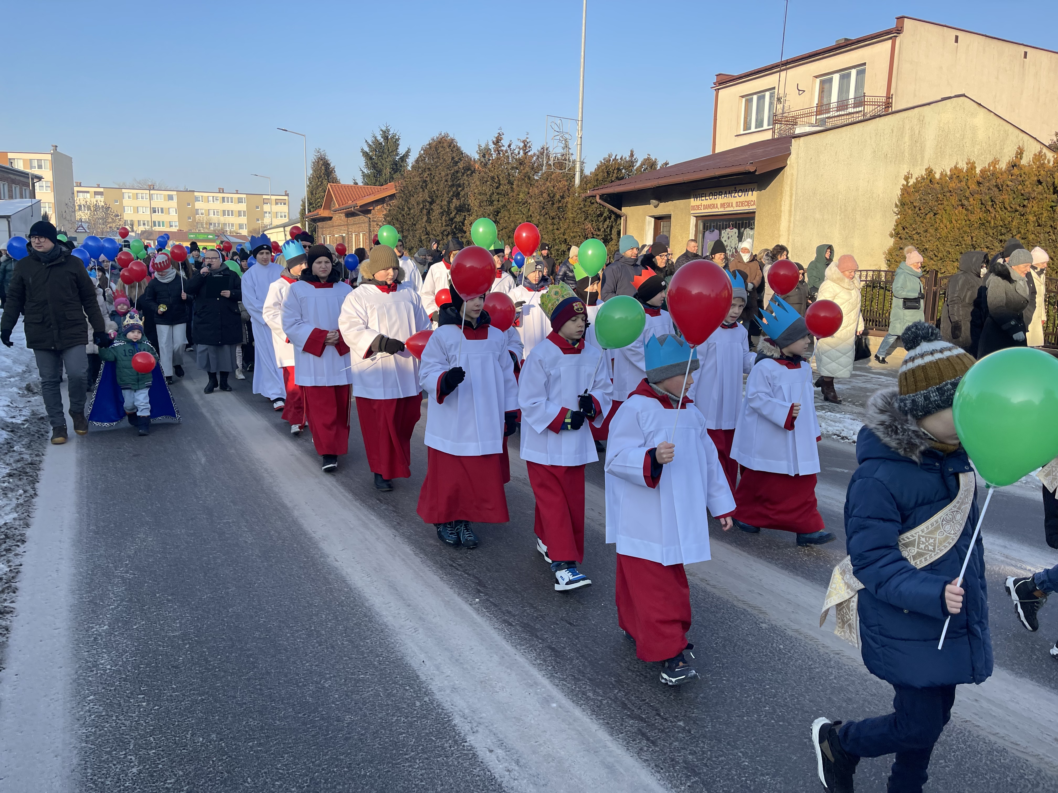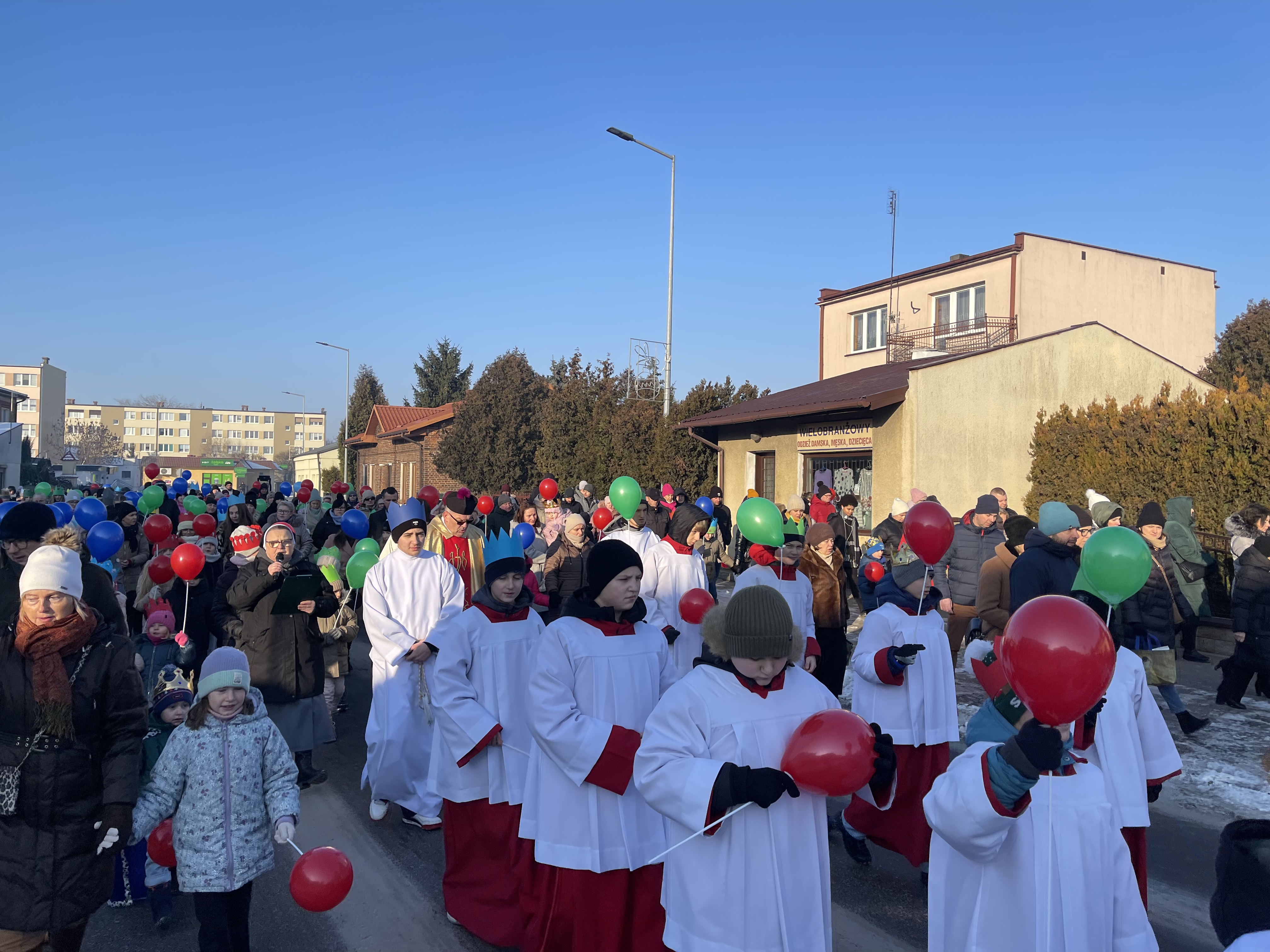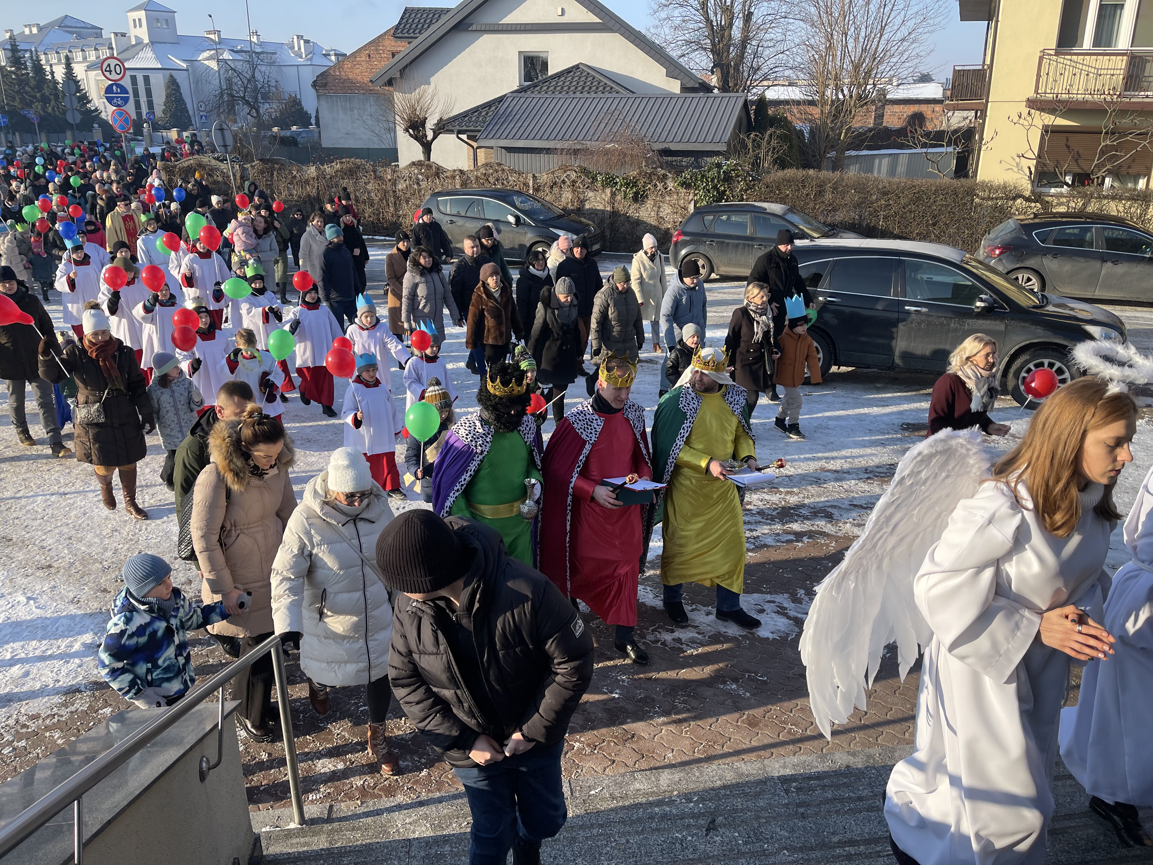 Nasza wspólnota parafialna tego dnia szczególnie się angażuje w przeżycie tego dnia. Jeszcze przed Mszą Święta zbieramy się na ulicy Bliznej przy kapliczce Matki Bożej gdzie ma wyruszyć Orszak Tech Króli. Wpierw ksiądz proboszcz wprowadza nas w wydarzenia tego dnia, a następnie jako wspólnota parafialna natrafiamy na zmierzających Mędrców (Trzech Króli) za Gwiazdą Betlejemską do Nowonarodzenego naszego Pana i Świętej Rodziny. Tak wyruszamy w pięknym Orszaku do naszej świątyni. Na przedzie prowadziła nas Gwiazda Betlejemska z aniołami, a następnie pięknie uformowana procesja z liturgicznej służby ołtarza. Towarzyszyła nam również ogromna ilość balonów, śpiewane pieśni, to nic innego jak radość podróży do naszego Zbawiciela.