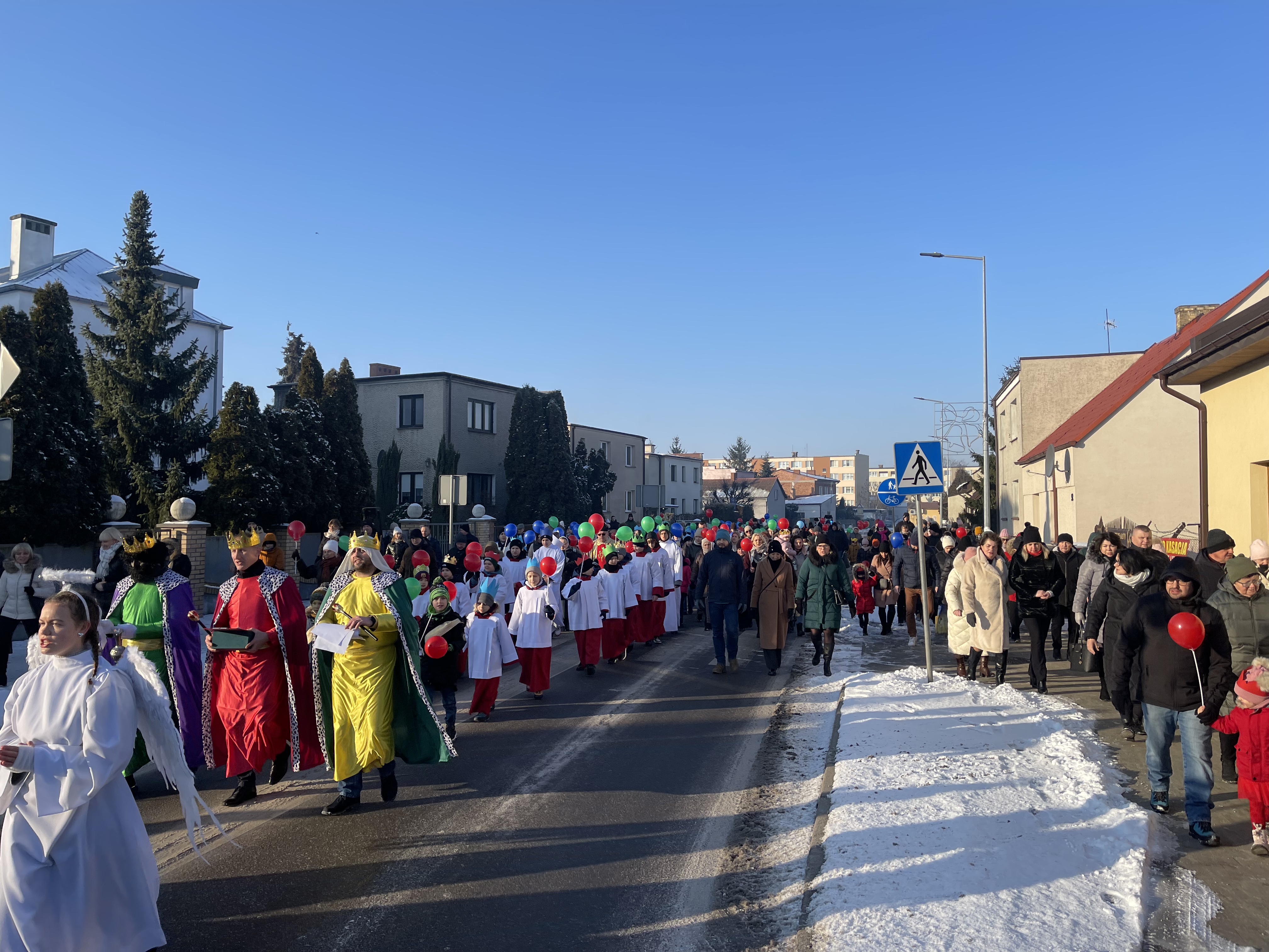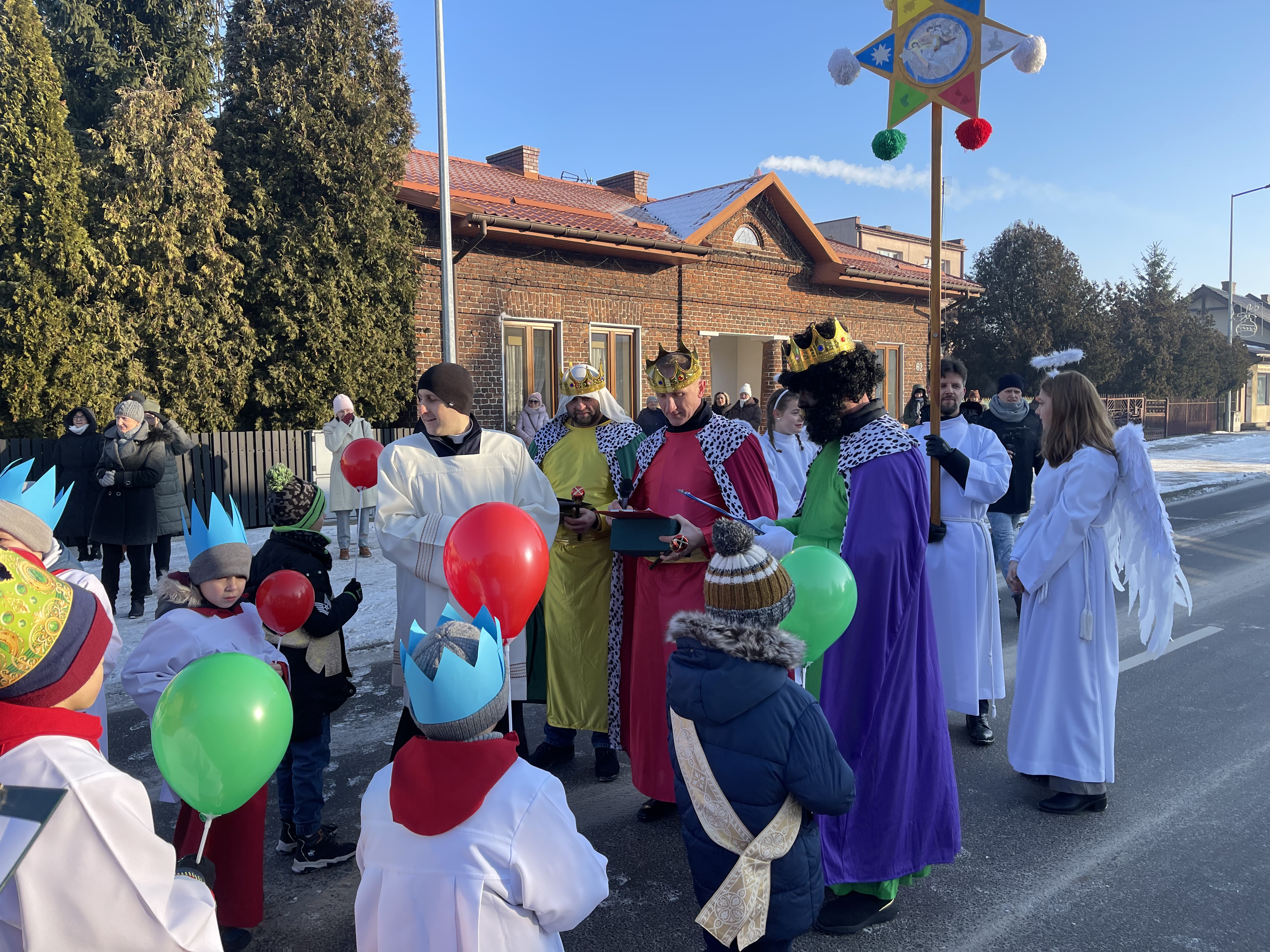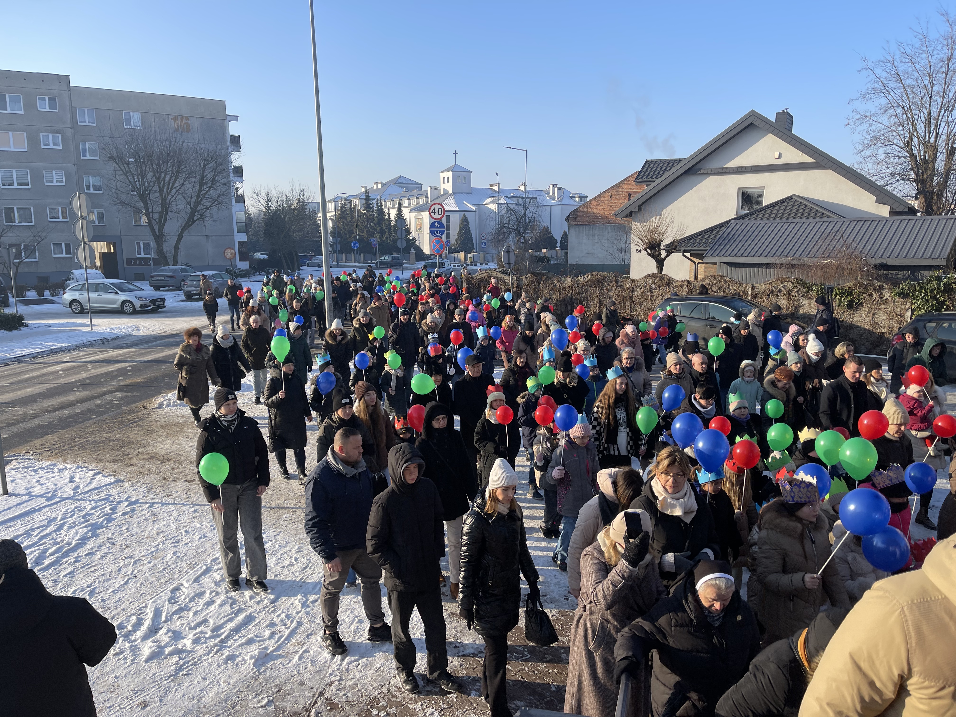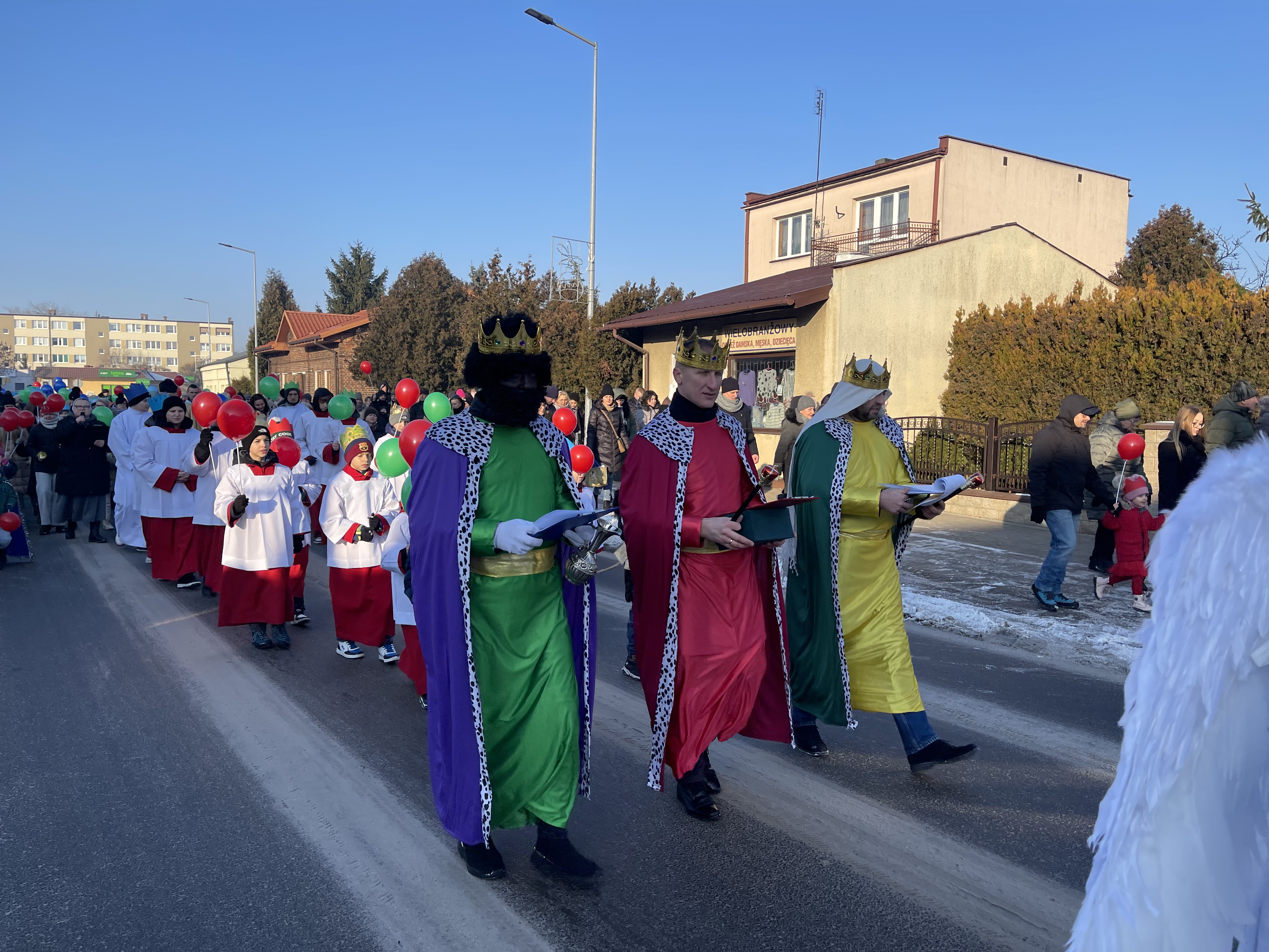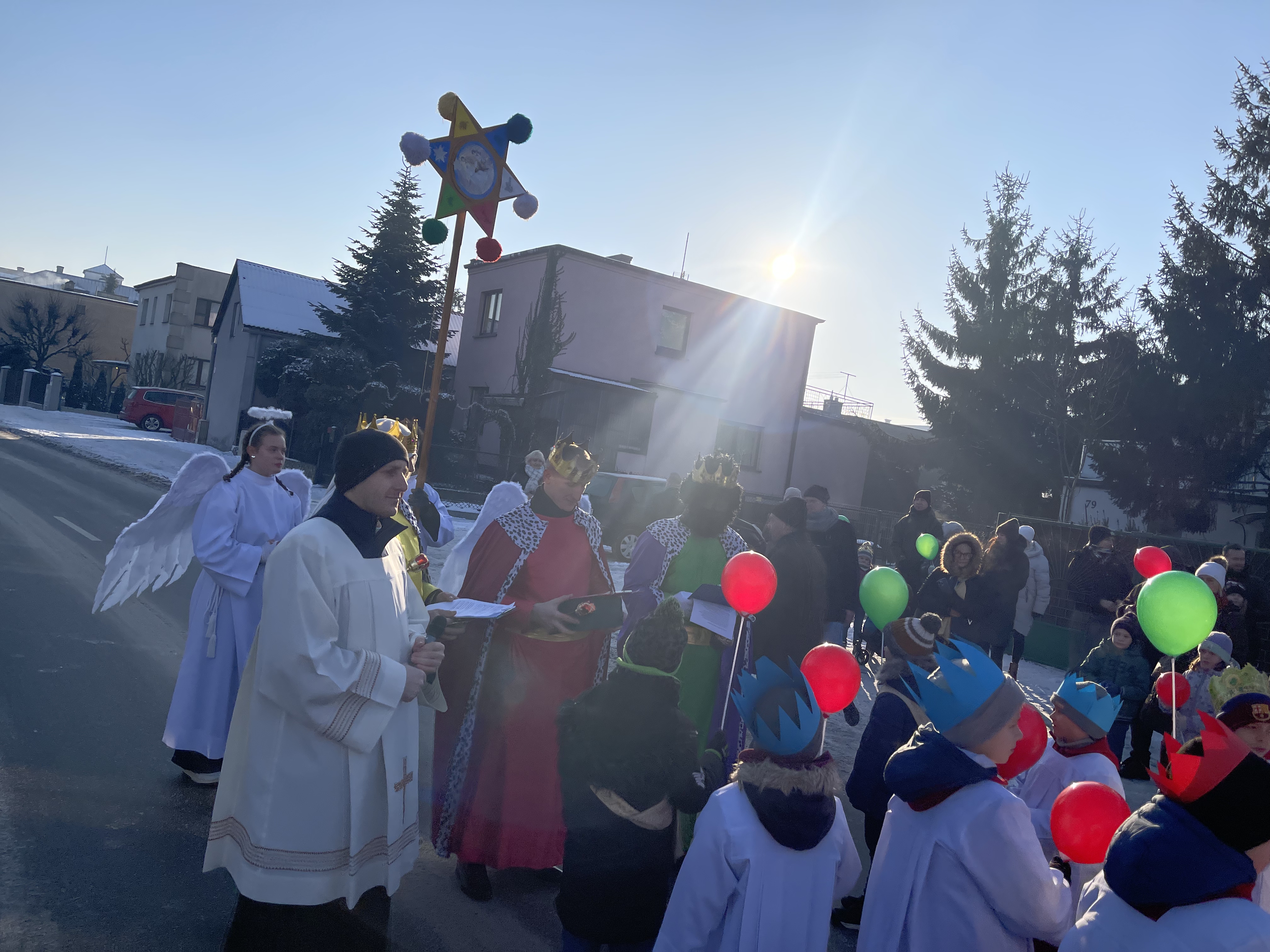 Nasza wspólnota parafialna tego dnia szczególnie się angażuje w przeżycie tego dnia. Jeszcze przed Mszą Święta zbieramy się na ulicy Bliznej przy kapliczce Matki Bożej gdzie ma wyruszyć Orszak Tech Króli. Wpierw ksiądz proboszcz wprowadza nas w wydarzenia tego dnia, a następnie jako wspólnota parafialna natrafiamy na zmierzających Mędrców (Trzech Króli) za Gwiazdą Betlejemską do Nowonarodzenego naszego Pana i Świętej Rodziny. Tak wyruszamy w pięknym Orszaku do naszej świątyni. Na przedzie prowadziła nas Gwiazda Betlejemska z aniołami, a następnie pięknie uformowana procesja z liturgicznej służby ołtarza. Towarzyszyła nam również ogromna ilość balonów, śpiewane pieśni, to nic innego jak radość podróży do naszego Zbawiciela.
