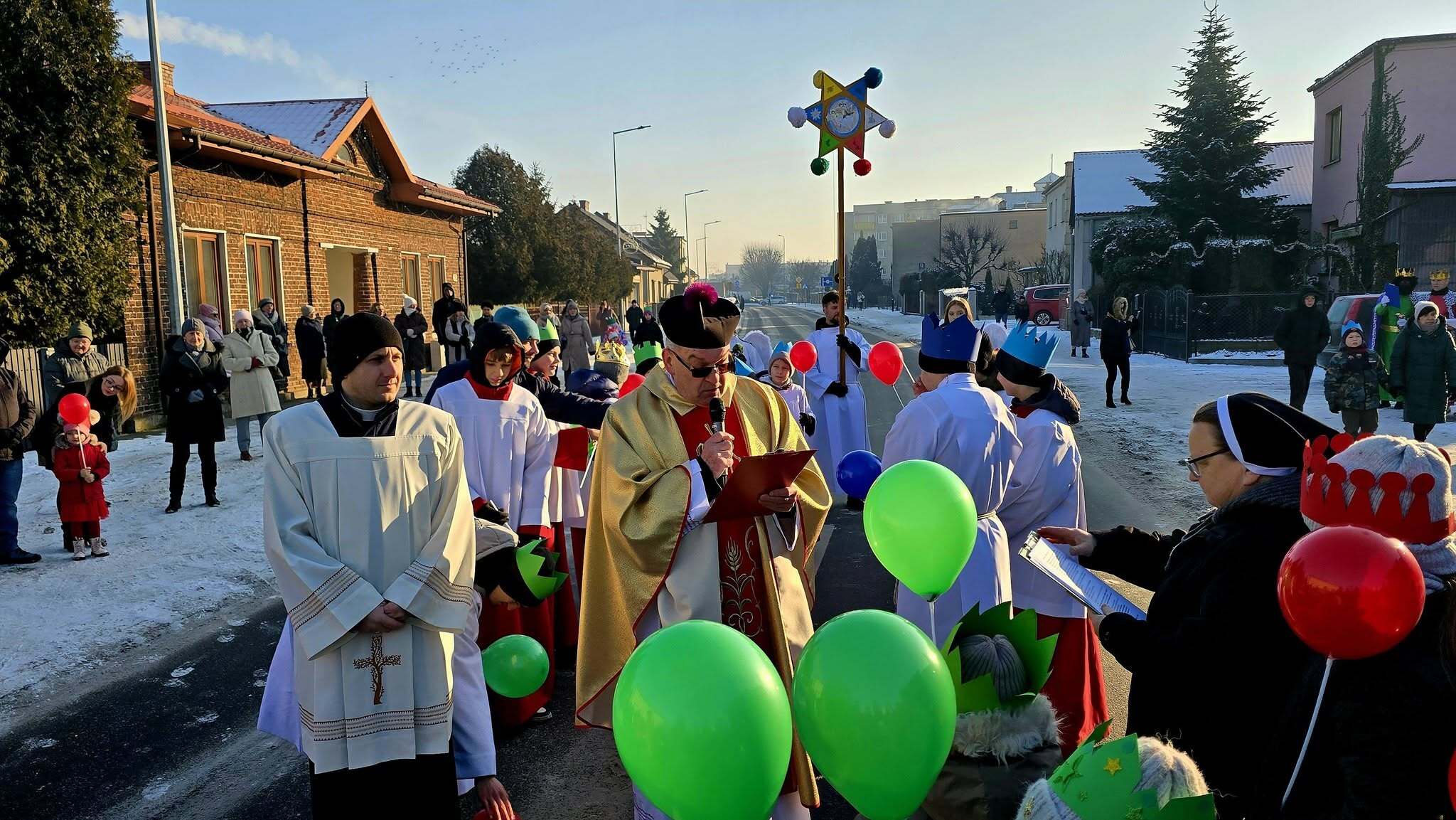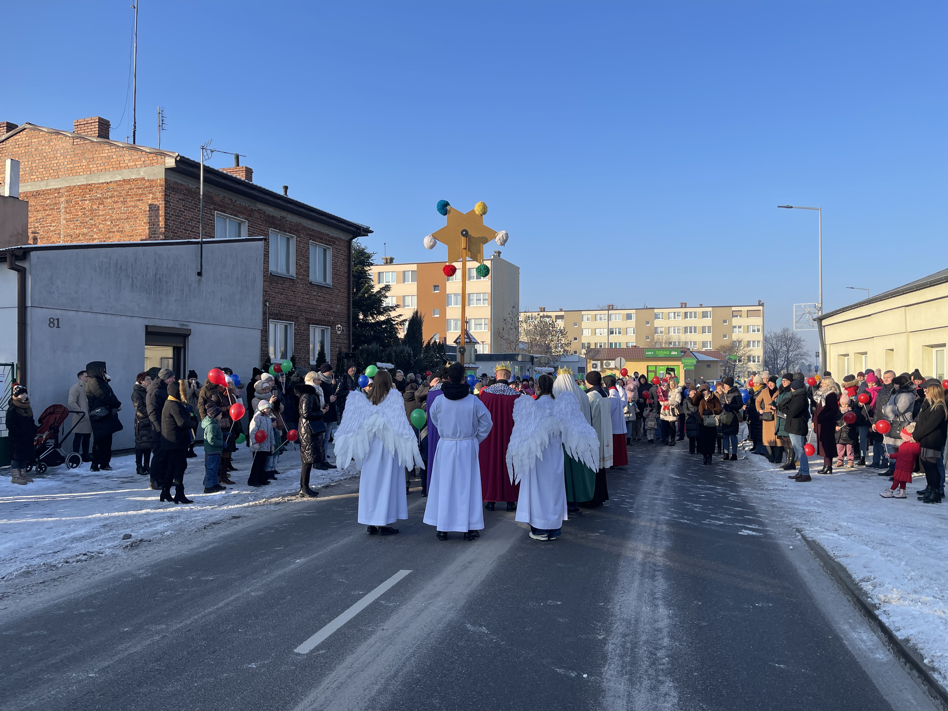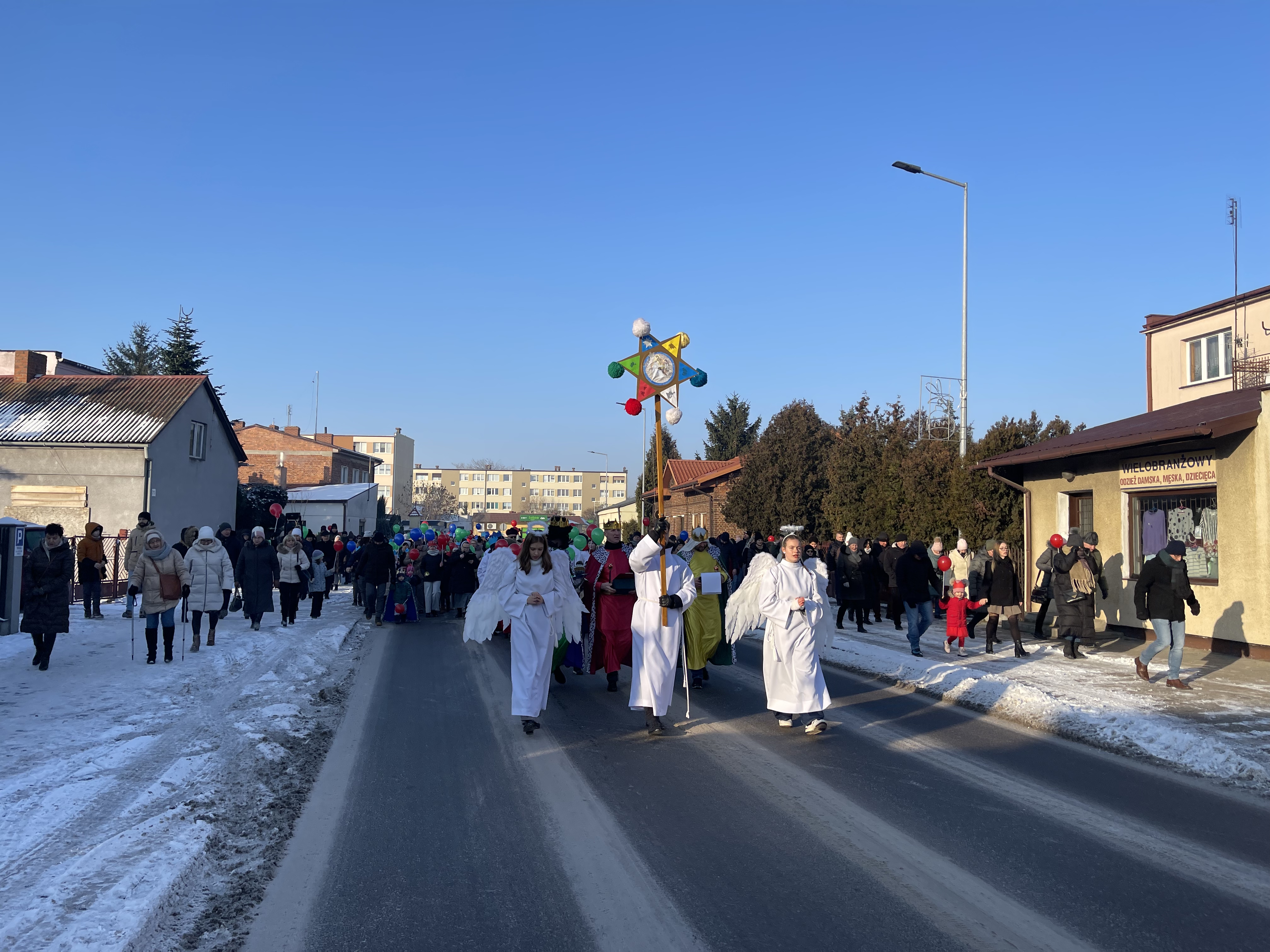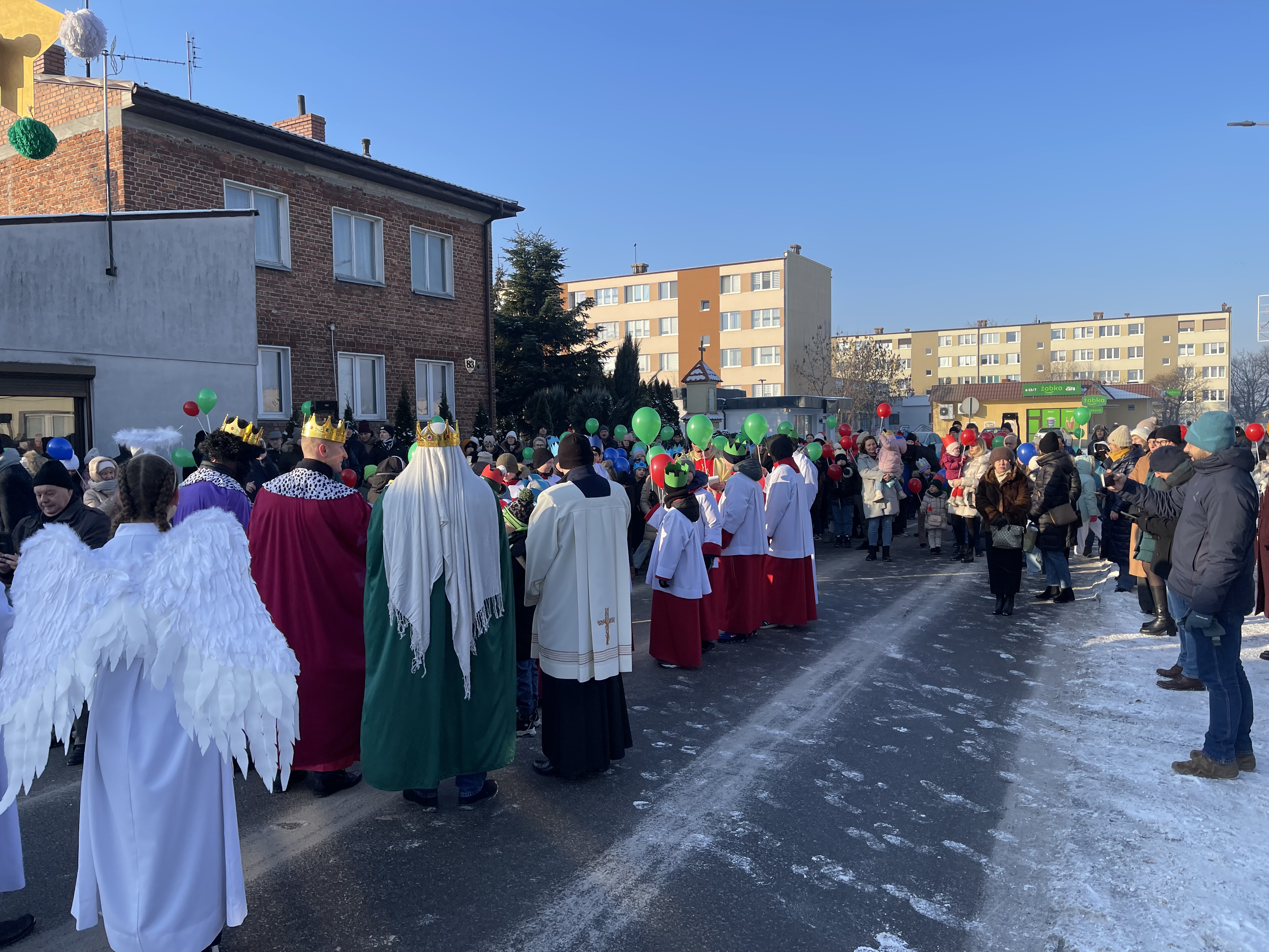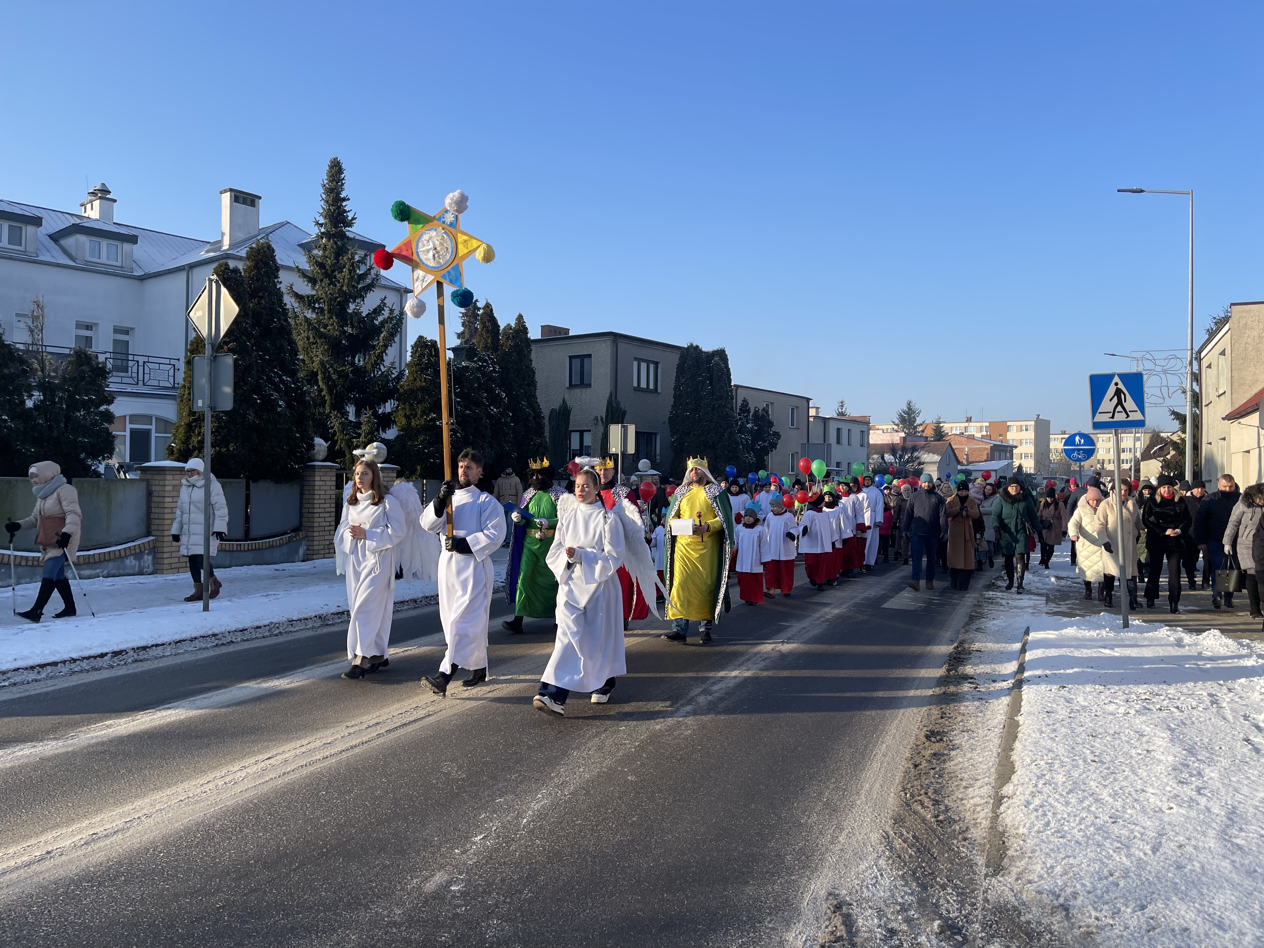 Nasza wspólnota parafialna tego dnia szczególnie się angażuje w przeżycie tego dnia. Jeszcze przed Mszą Święta zbieramy się na ulicy Bliznej przy kapliczce Matki Bożej gdzie ma wyruszyć Orszak Tech Króli. Wpierw ksiądz proboszcz wprowadza nas w wydarzenia tego dnia, a następnie jako wspólnota parafialna natrafiamy na zmierzających Mędrców (Trzech Króli) za Gwiazdą Betlejemską do Nowonarodzenego naszego Pana i Świętej Rodziny. Tak wyruszamy w pięknym Orszaku do naszej świątyni. Na przedzie prowadziła nas Gwiazda Betlejemska z aniołami, a następnie pięknie uformowana procesja z liturgicznej służby ołtarza. Towarzyszyła nam również ogromna ilość balonów, śpiewane pieśni, to nic innego jak radość podróży do naszego Zbawiciela.