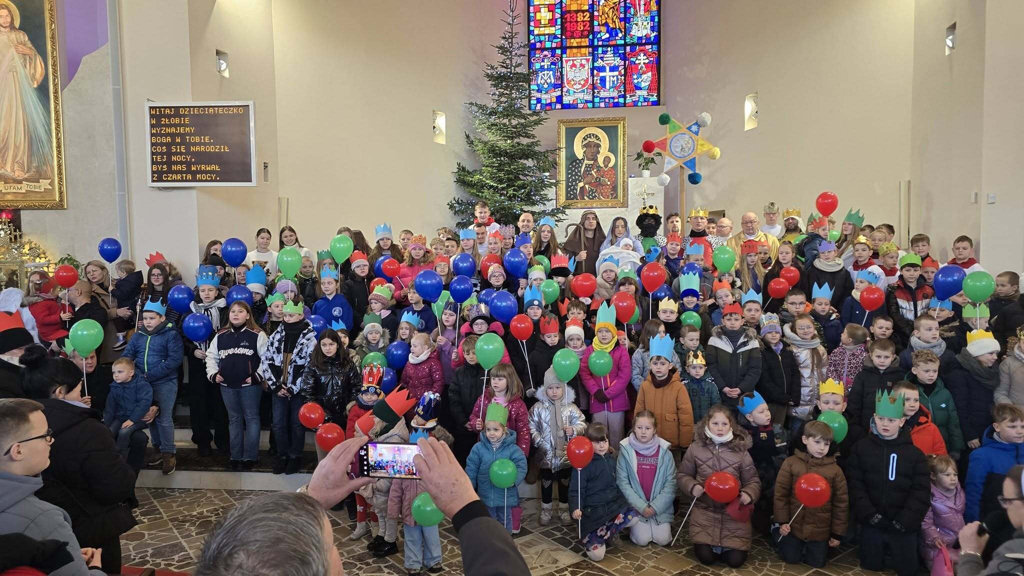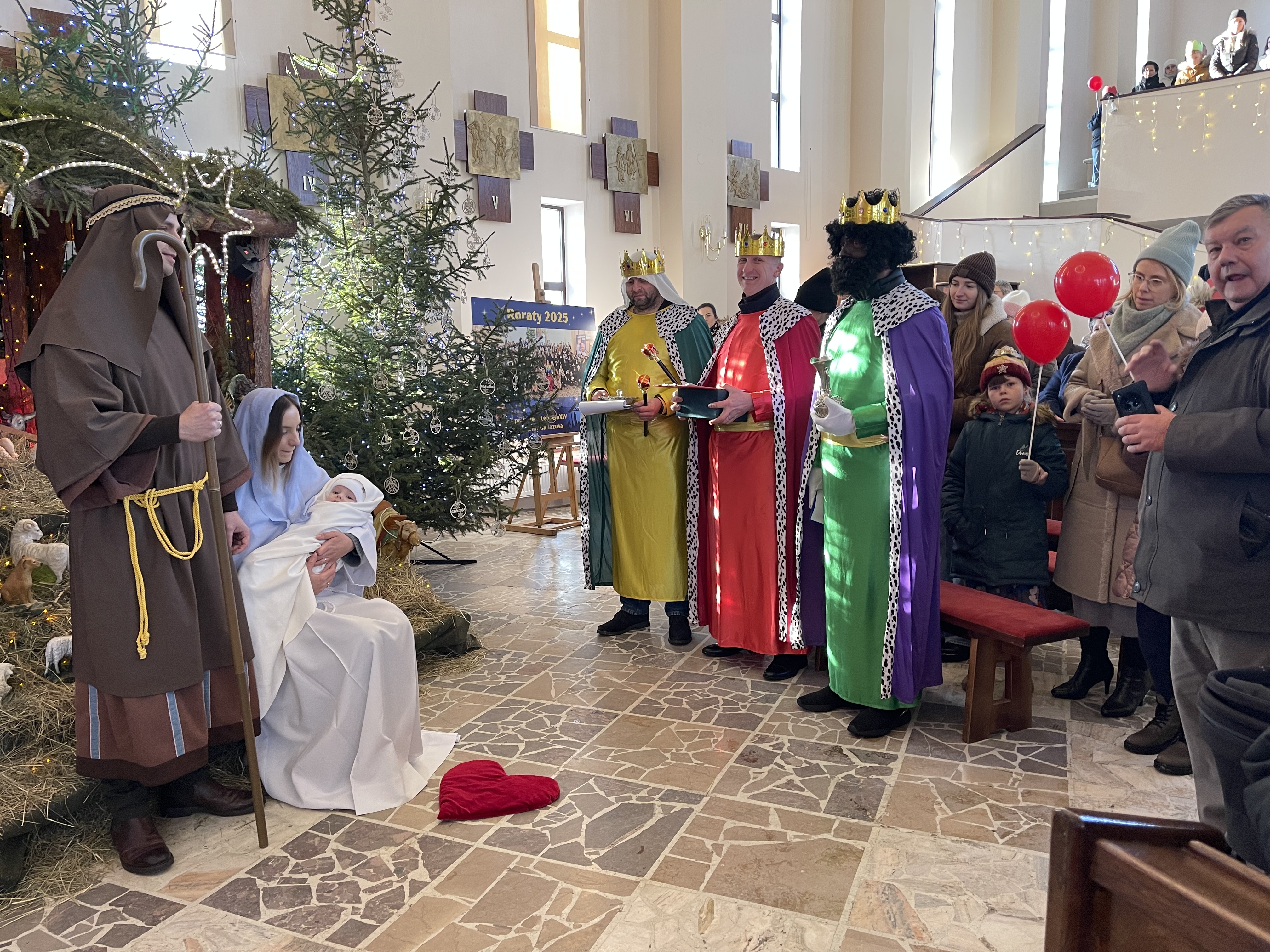 Dziękujemy jeszcze raz wszystkim zaanagażowanym - zwłaszcza ogrywającym role Świętej Rodziny oraz Trzech Króli. Dziękujemy również wszystkim rodzicom pomagającym w przygotowaniu tego wydarzenia, m.in. przygotowania balonów. Dziękujemy również scholi "wNieboGłosy", panu organiście Krystianowi, ministrantom i wszystkim przybyłym.