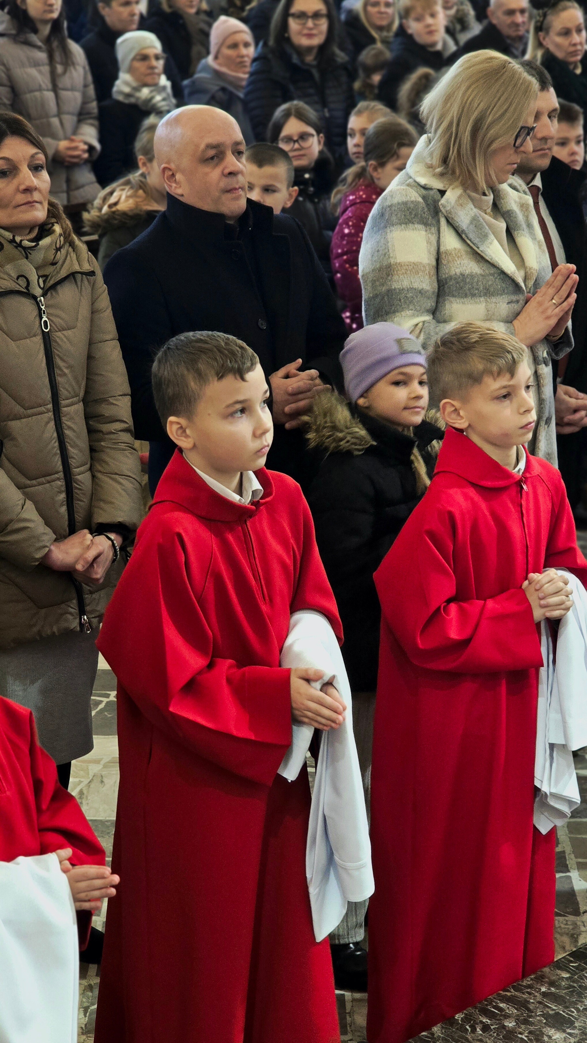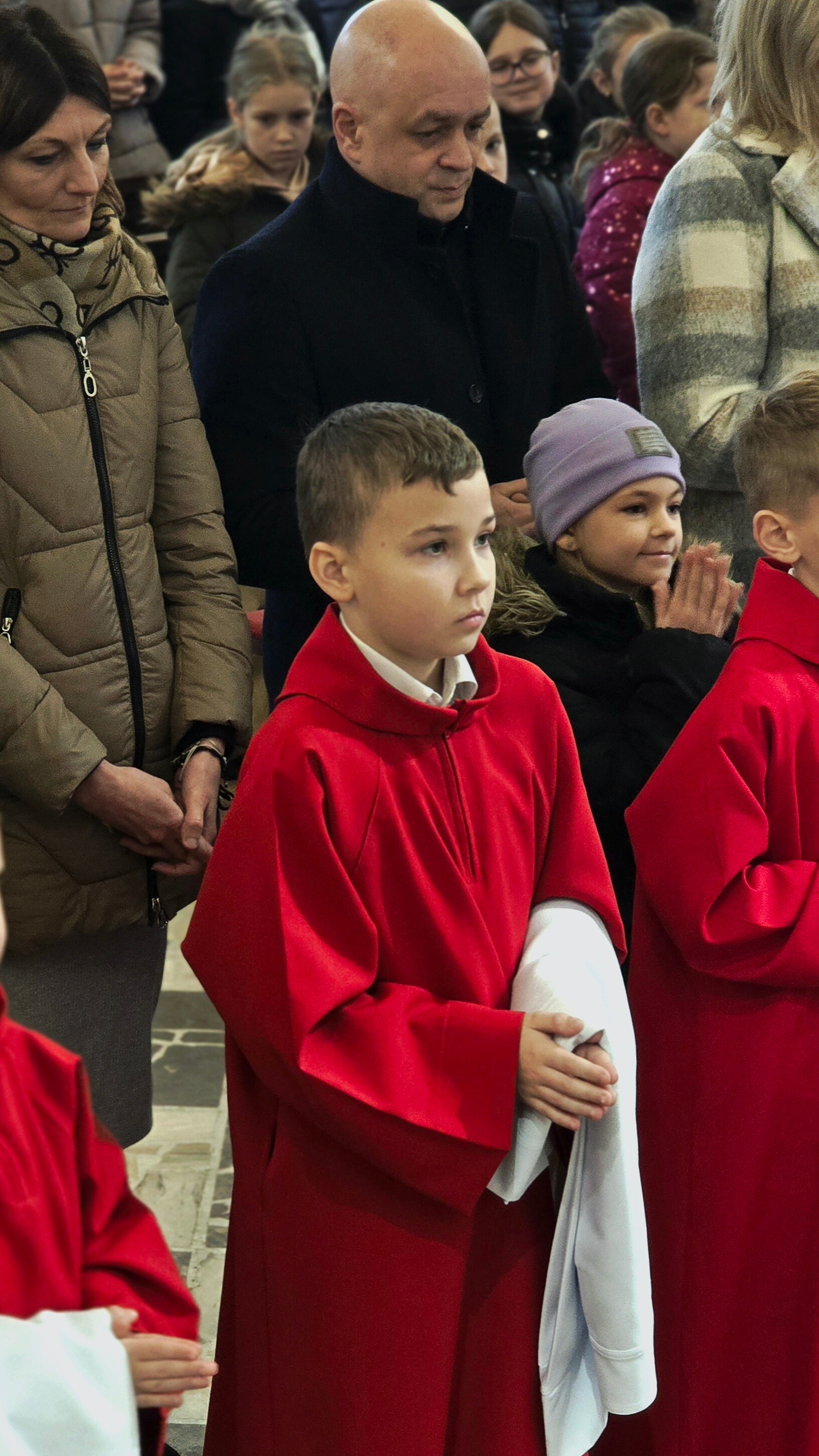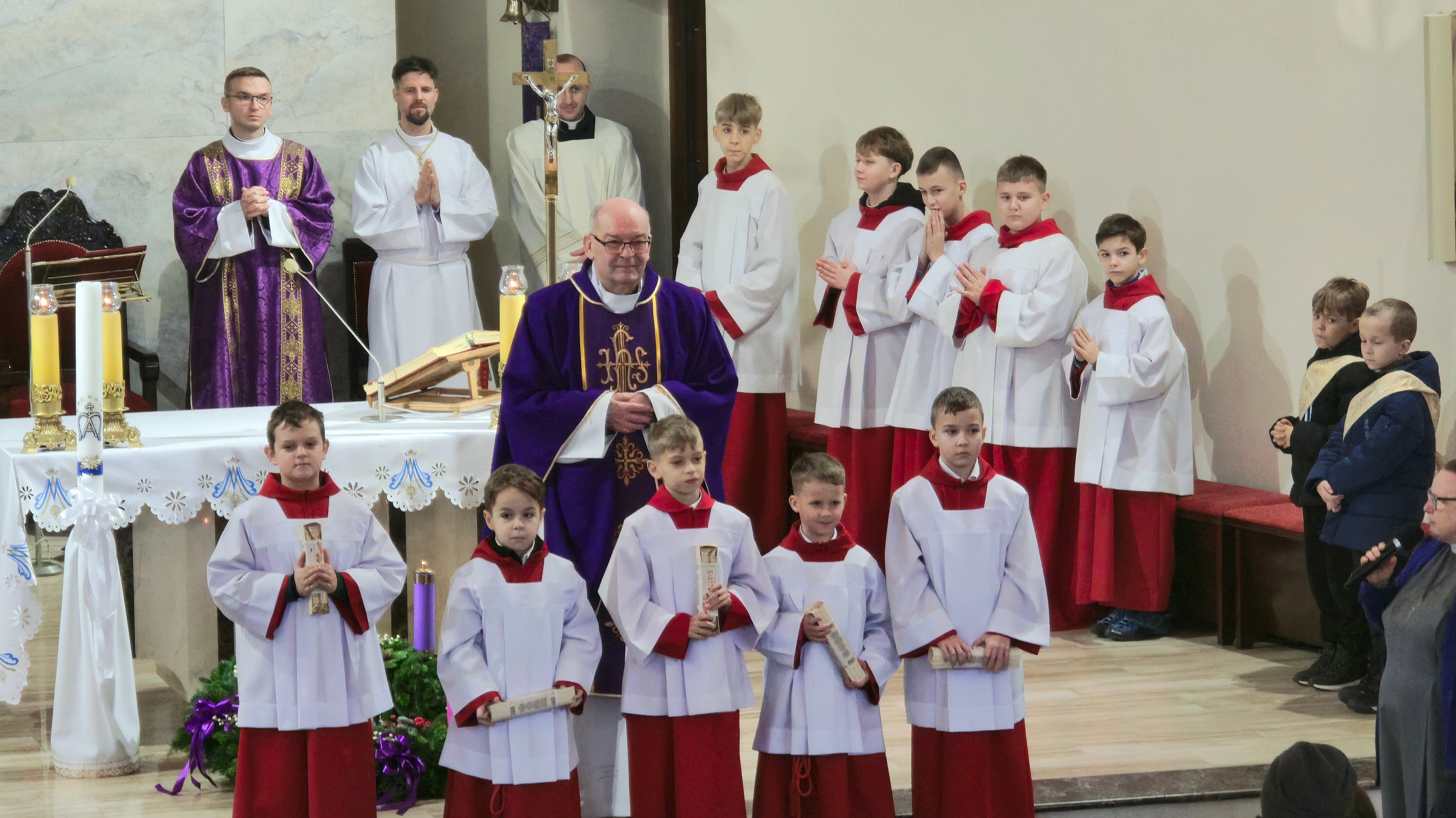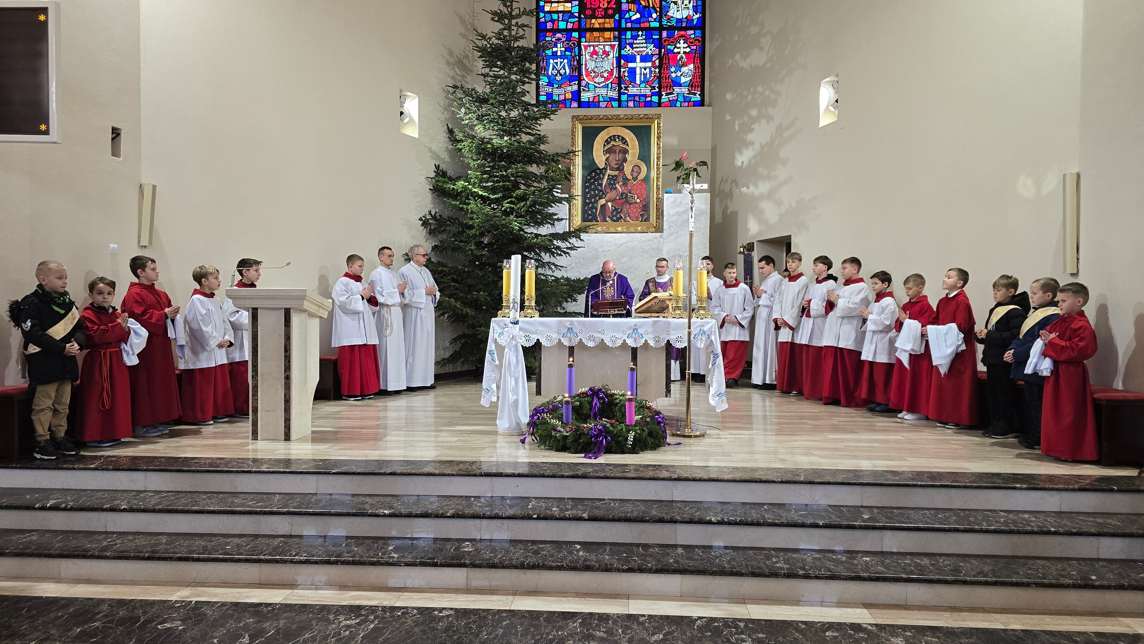Podczas uroczystej Mszy Świętej pięcioro chłopców, przygotowywanych przez ks. Dominika Stempina, została oficjalnie przyjęta do grona ministrantów. W trakcie liturgii kandydaci po raz pierwszy przywdziali szaty ministranckie, które zostały uroczyście poświęcone przez ks. proboszcza Władysława Waszaka. Ten wymowny znak stał się nie tylko widzialnym potwierdzeniem rozpoczęcia ich służby przy ołtarzu, lecz także symbolem gotowości do podejmowania nowych obowiązków i odpowiedzialności wynikających z posługi liturgicznej.