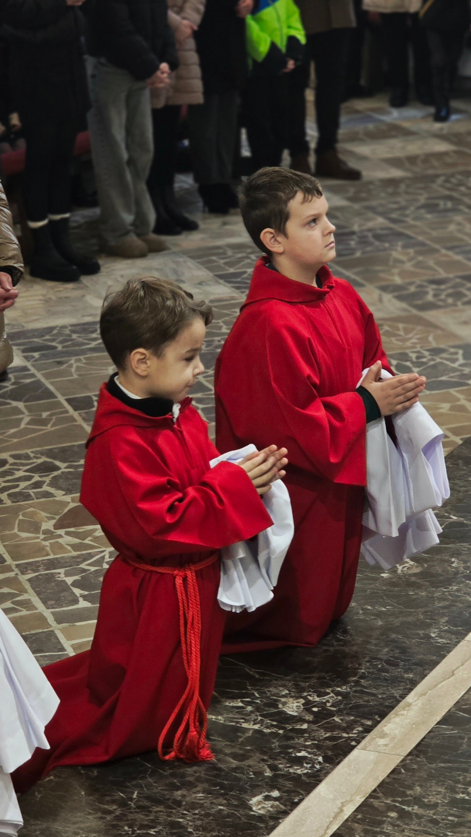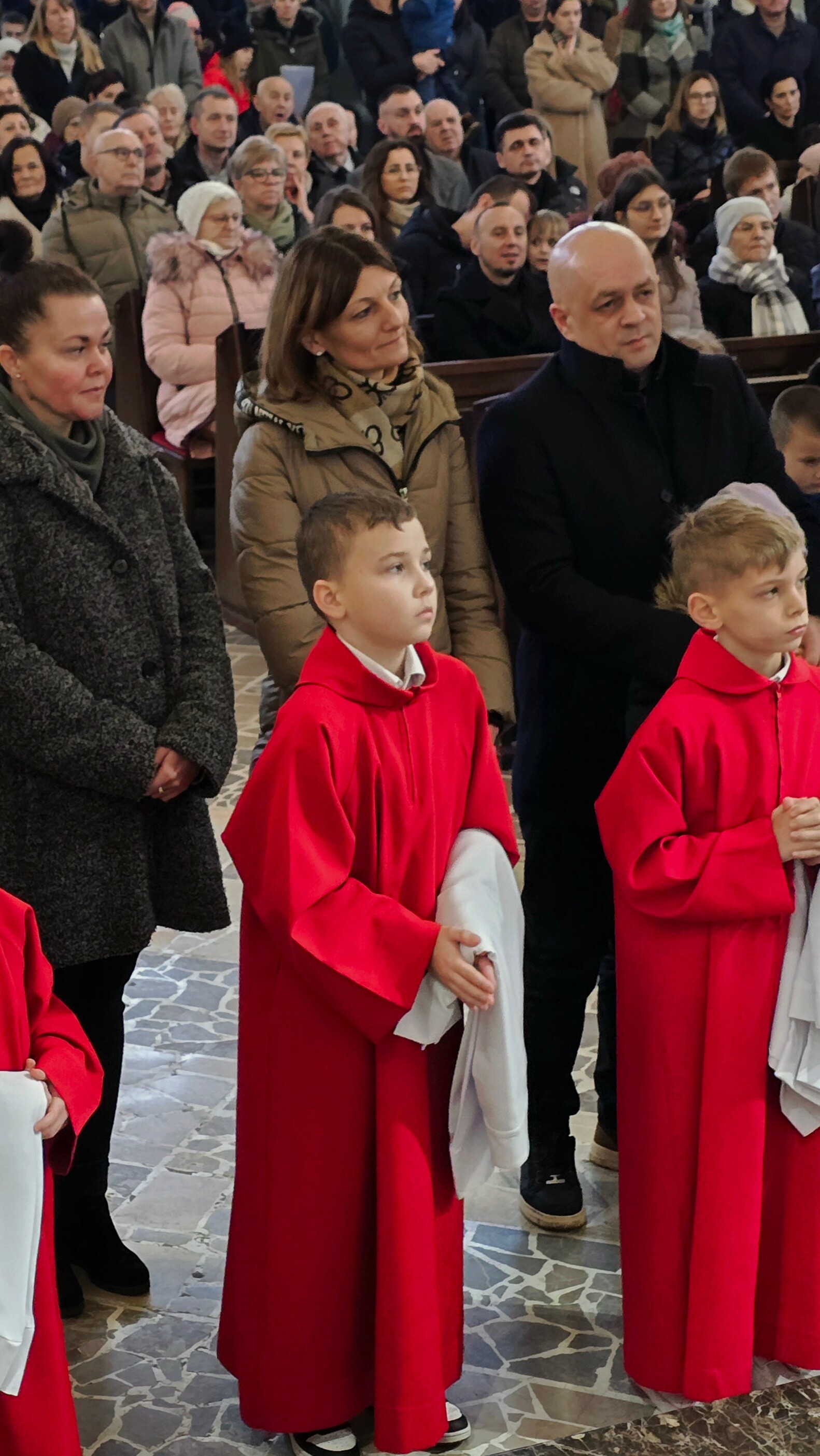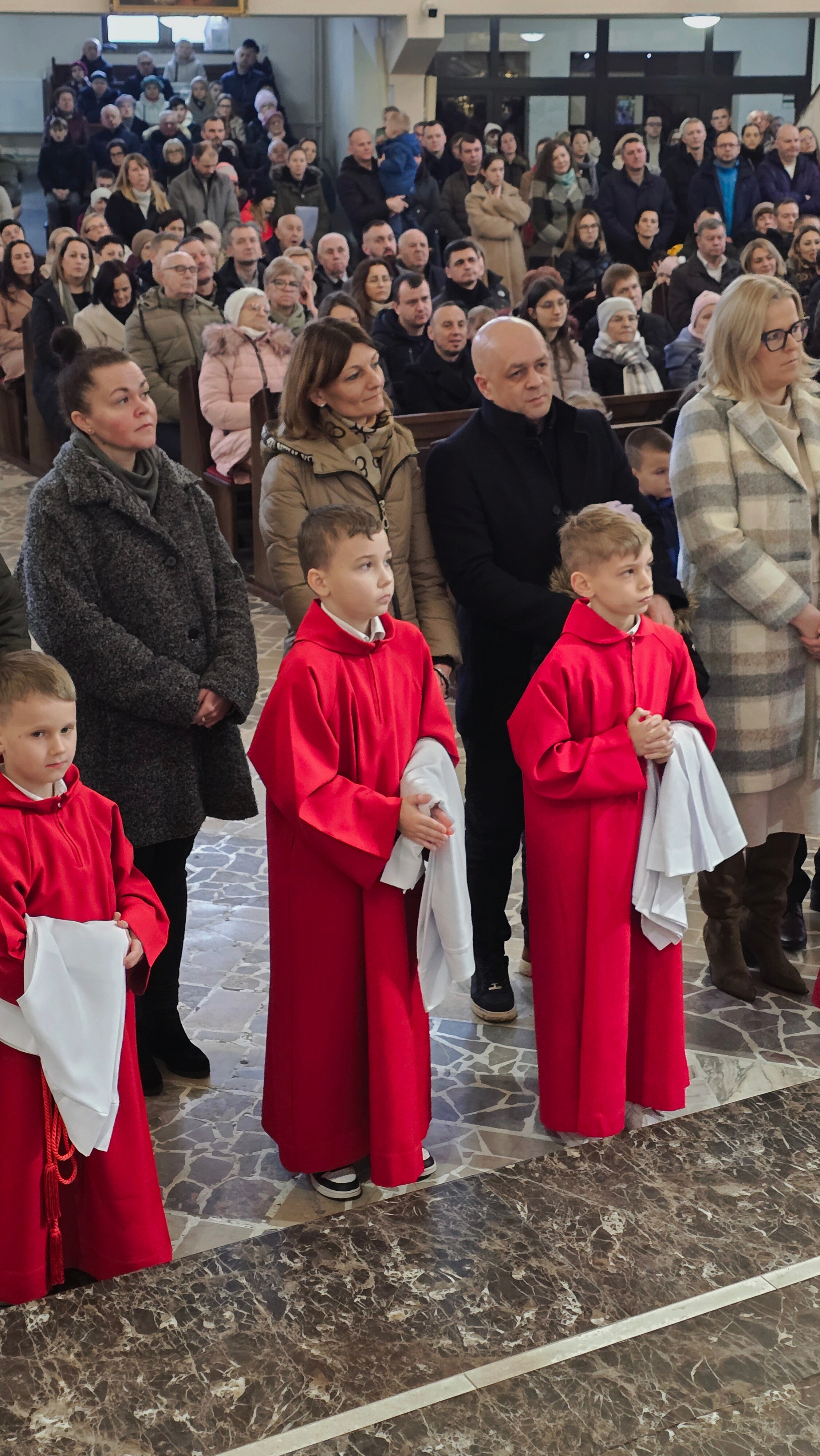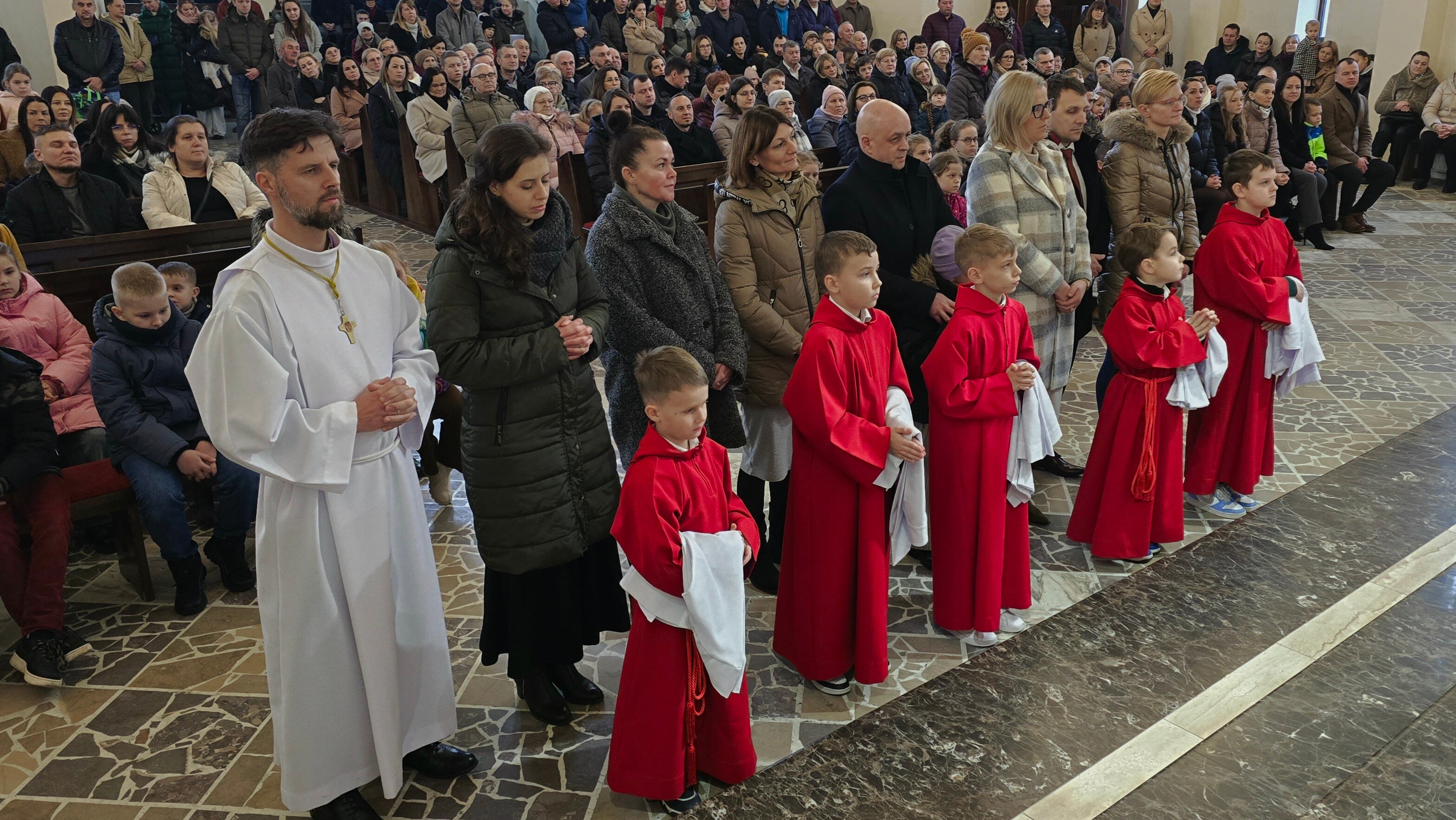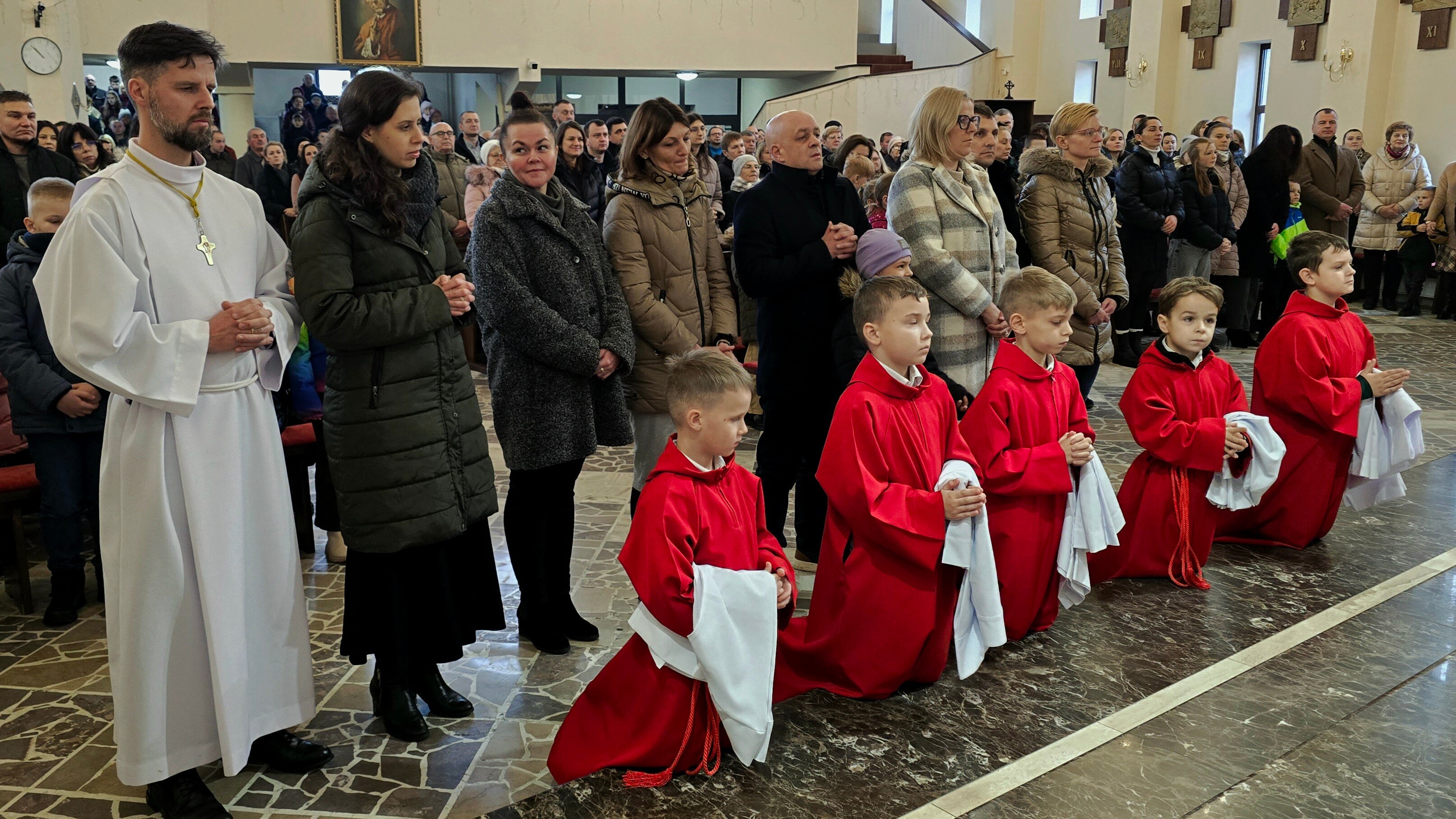 Podczas uroczystej Mszy Świętej pięcioro chłopców, przygotowywanych przez ks. Dominika Stempina, została oficjalnie przyjęta do grona ministrantów. W trakcie liturgii kandydaci po raz pierwszy przywdziali szaty ministranckie, które zostały uroczyście poświęcone przez ks. proboszcza Władysława Waszaka. Ten wymowny znak stał się nie tylko widzialnym potwierdzeniem rozpoczęcia ich służby przy ołtarzu, lecz także symbolem gotowości do podejmowania nowych obowiązków i odpowiedzialności wynikających z posługi liturgicznej.